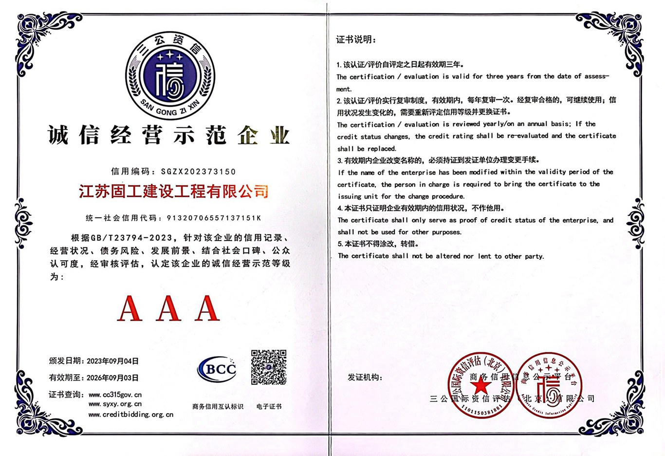 誠信經(jīng)營示范企業(yè)