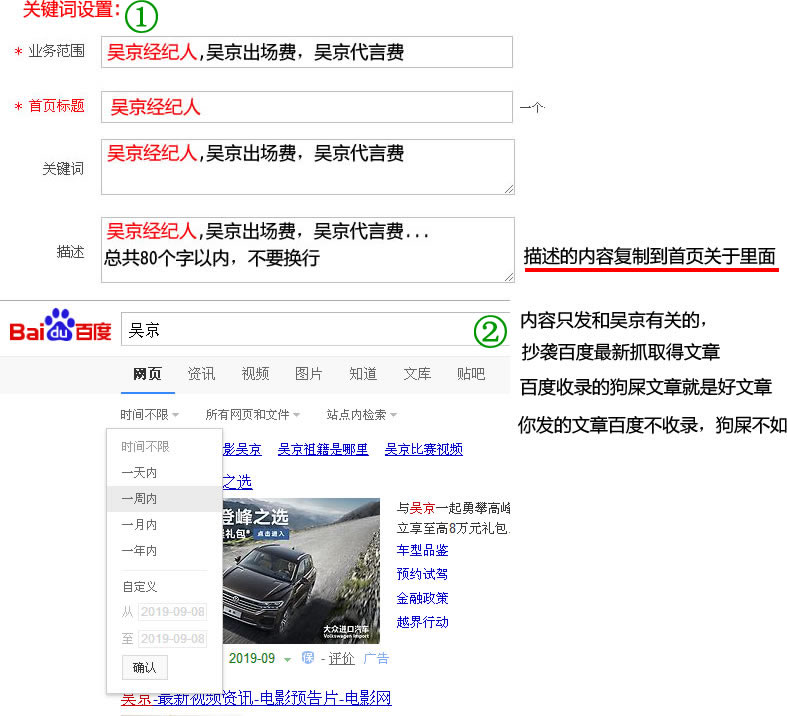 假如經紀人公司(你的公司),大大小小上千個明星(關鍵詞),一個明星(關鍵詞)做一個網站,什么明星(關鍵詞)都做,排名上不去。